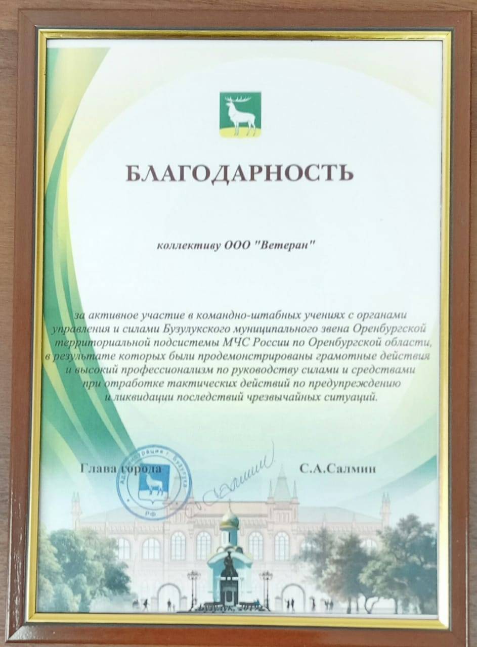 В соответствии с Планом проведения практических мероприятий с органами управления и силами Бузулукского городского звена Оренбургской территориальной подсистемы РСЧС и ГО муниципального образования город Бузулук, утверждённым начальником Главного управления МЧС России по Оренбургской области 21.05.2019 года в 14.00 часов на территории ООО «ВЕТЕРАН» проведены Тактико-специальные учения (ТСУ) по отработке действий персонала при возникновении ЧС на складе хранения соляной кислоты.